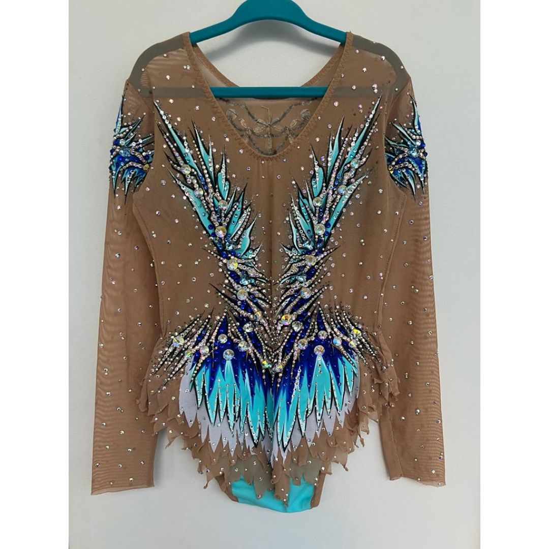 Gorgeous previously owned in excellent condition leotard for sale, all highest quality stones. Please see a detailed VIDEO of the leotard