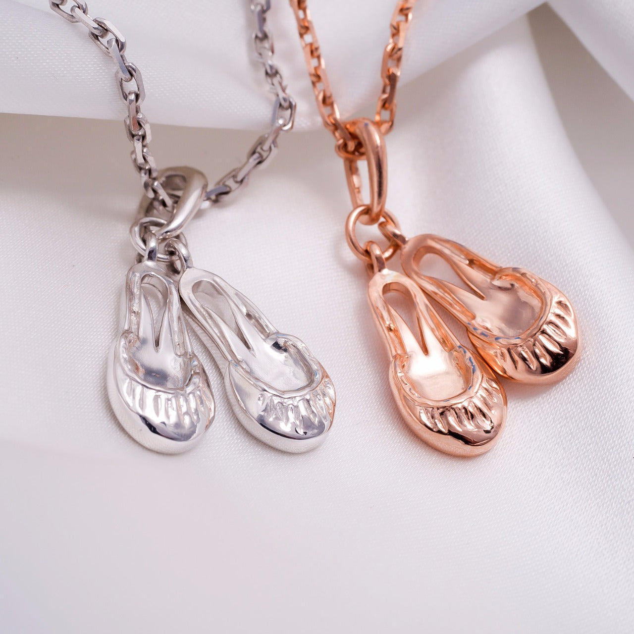 These stunning pendants in the form of beautiful RG half-shoes are a perfect gift for any aspiring gymnast! Made from sterling silver and available in natural or goldplated finishes they will serve as an everyday tribute to your favorite sport.