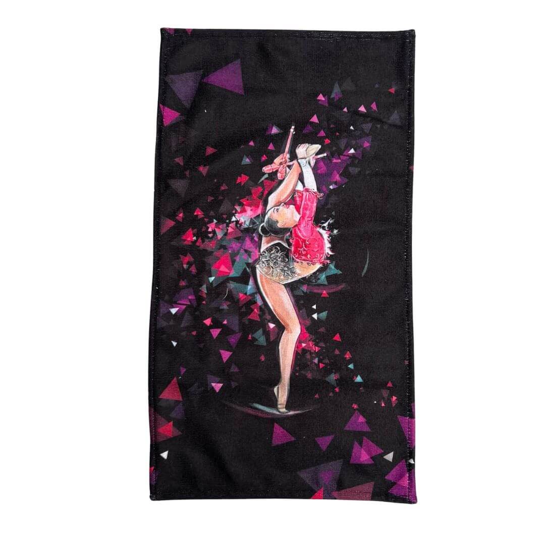Beautiful gymnast prints on the front of the towel. Plain on the back.