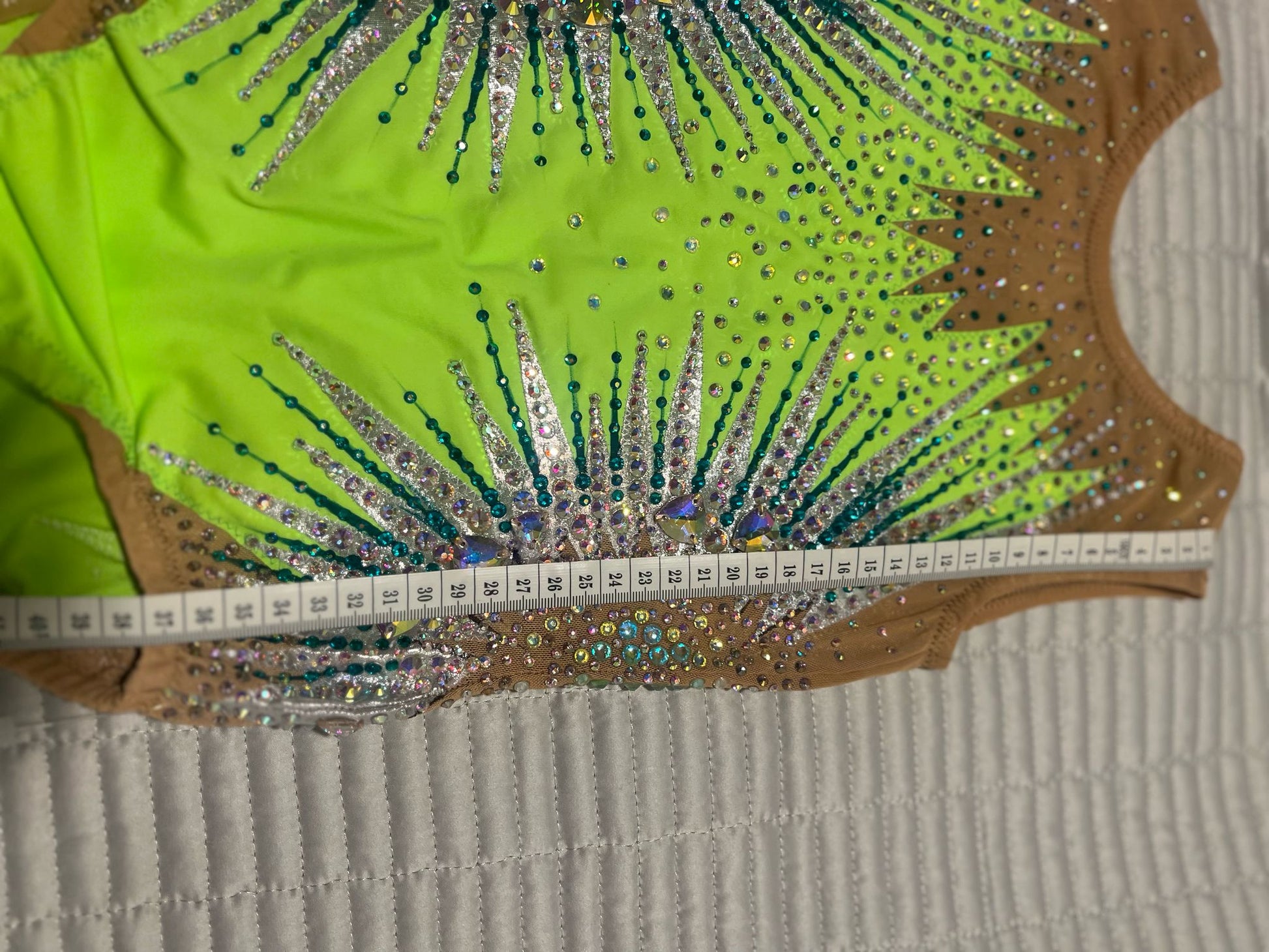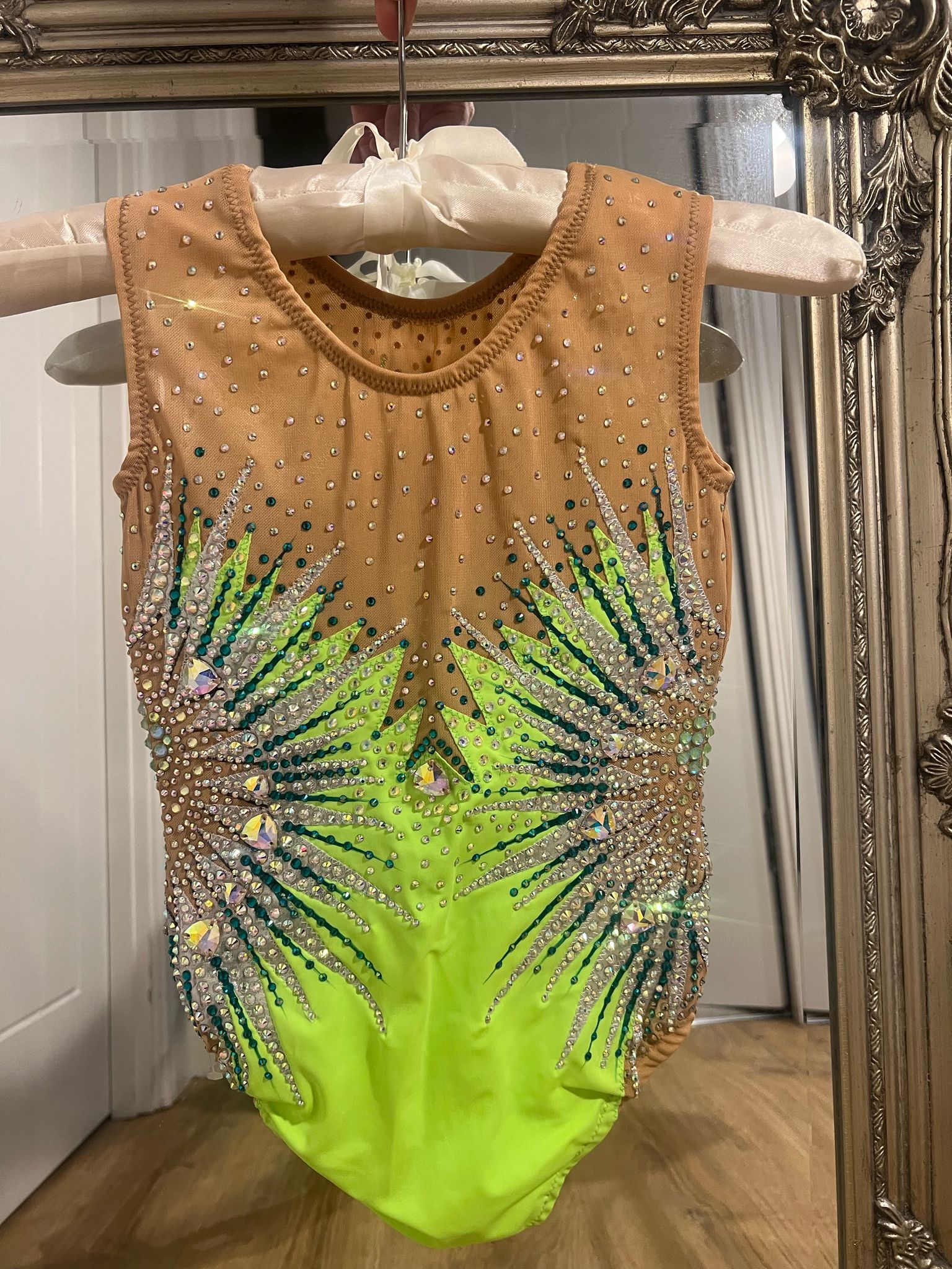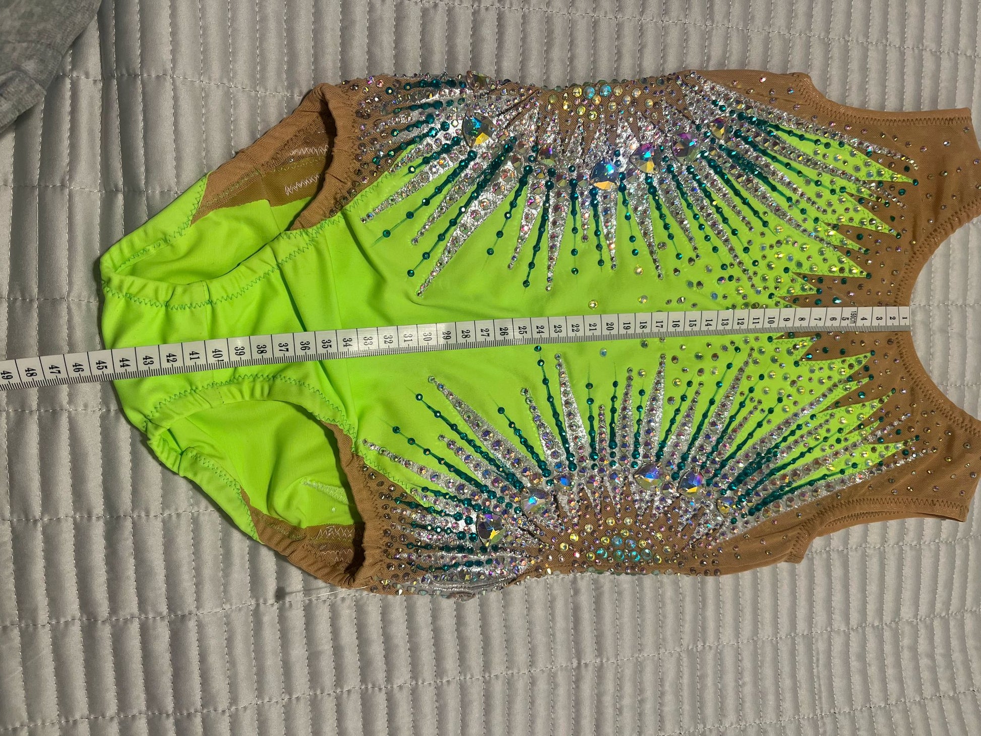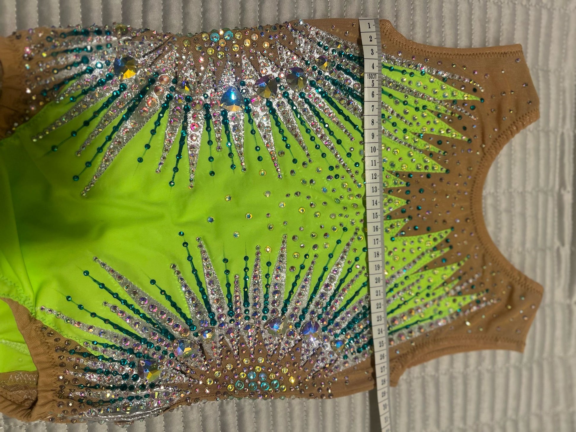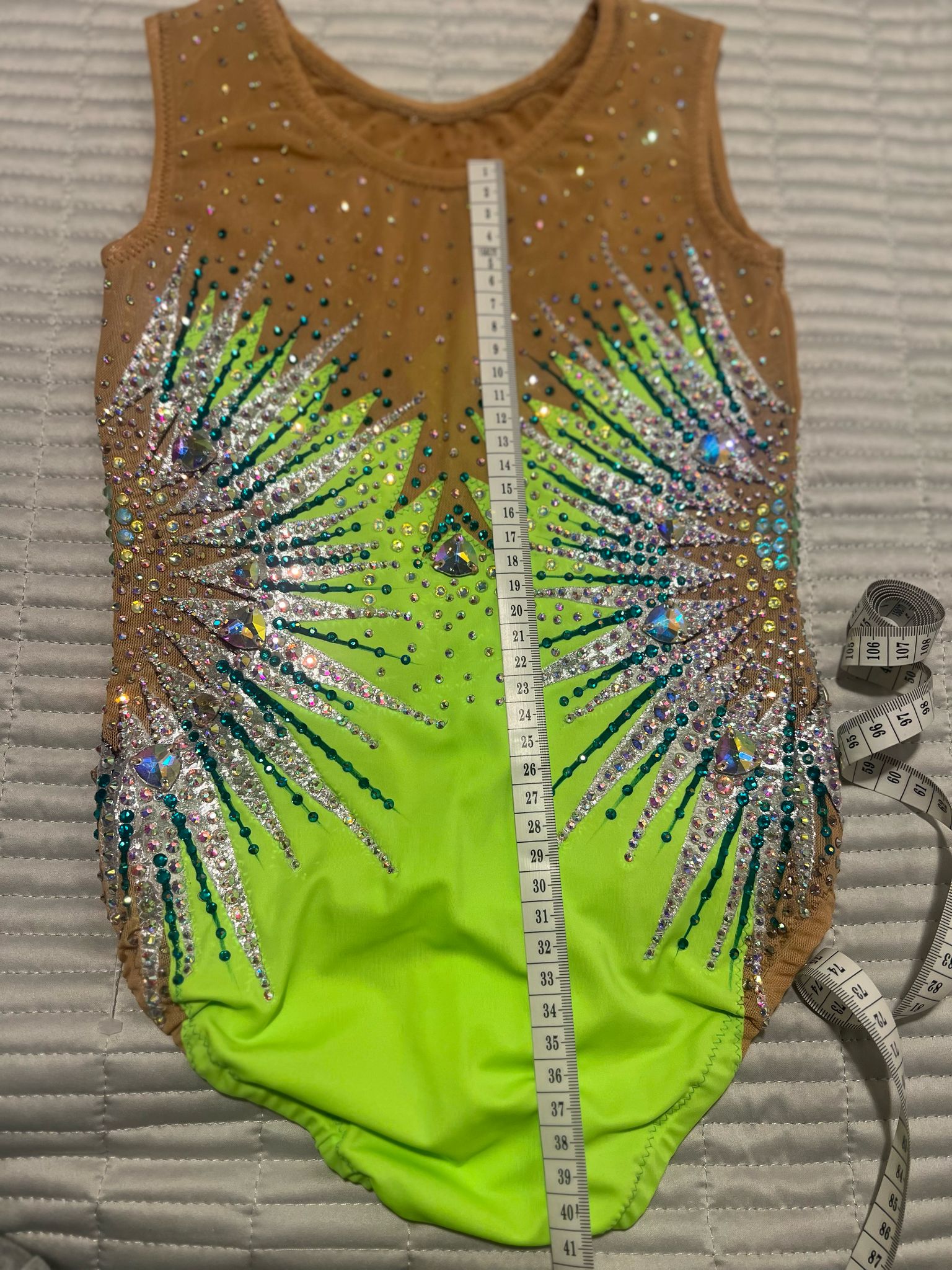 Beautiful handmade leotard, with high quality stones, brand new. Height up to 135 cm. Please see the photo with the measurements below. Watch the video of the leotard