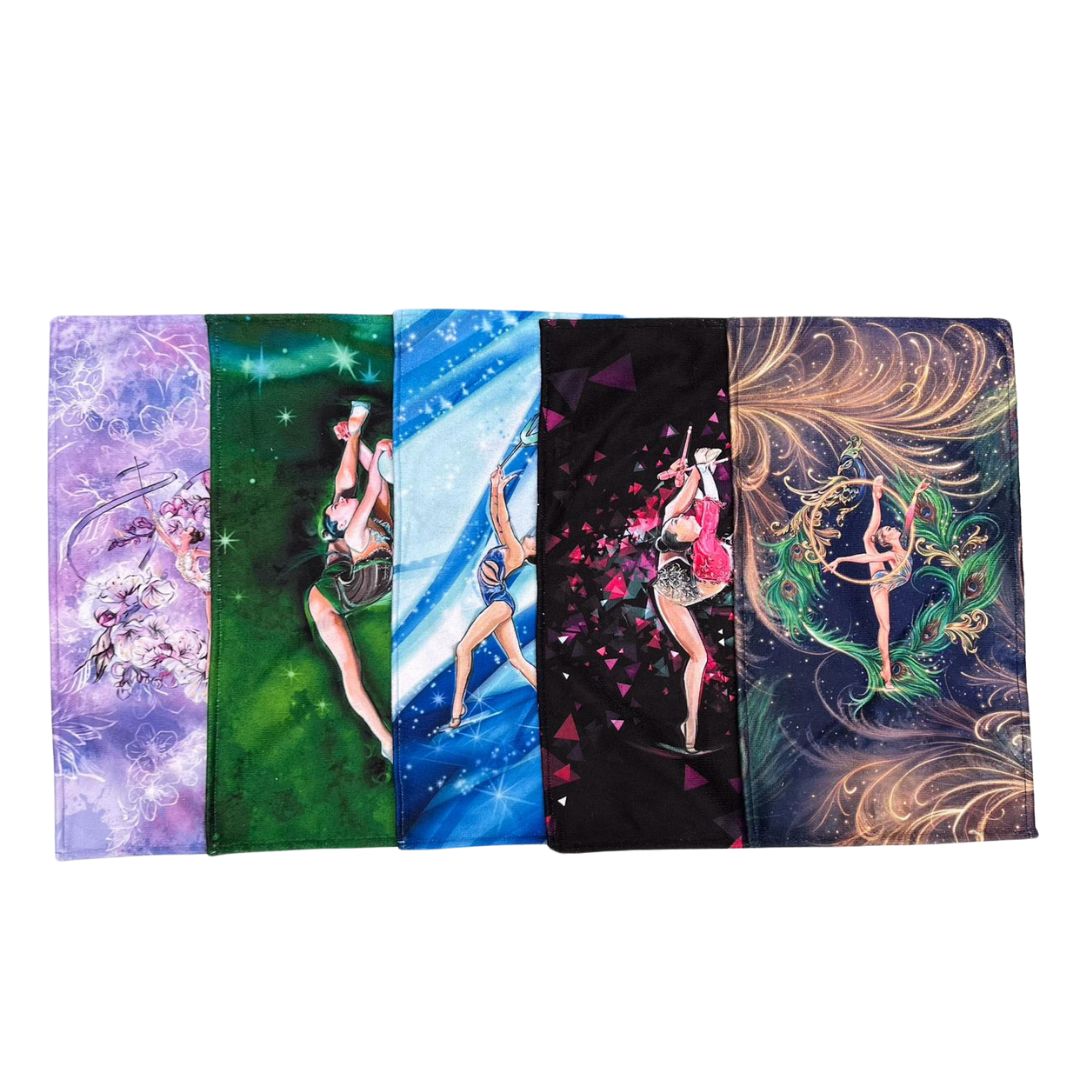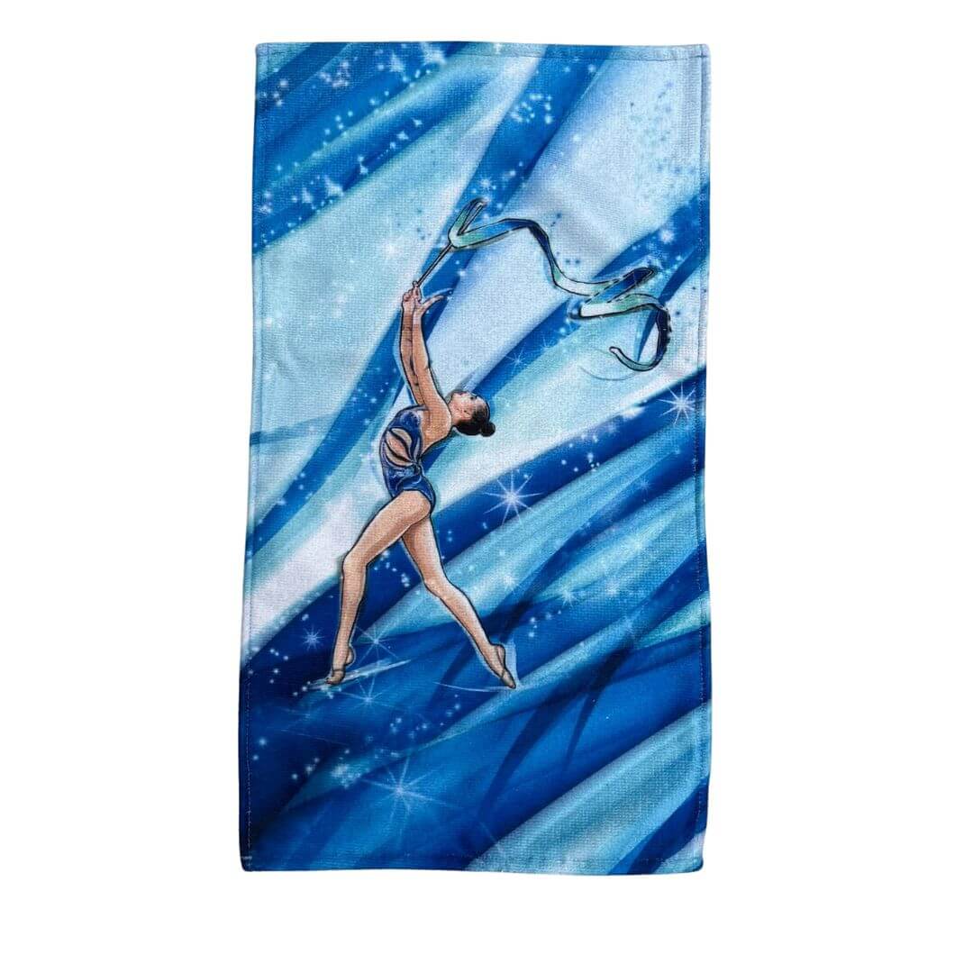 Beautiful gymnast prints on the front of the towel. Plain on the back.