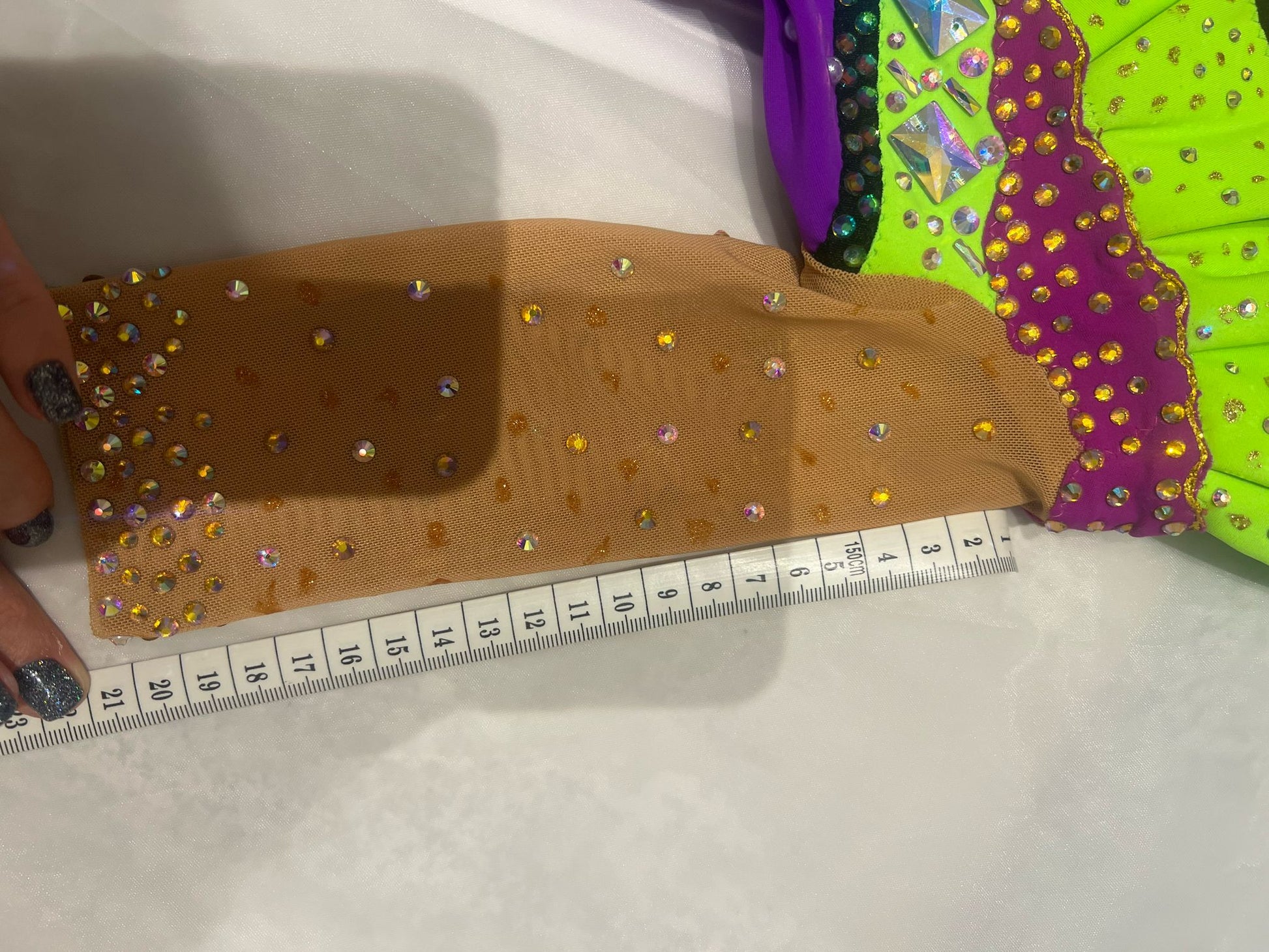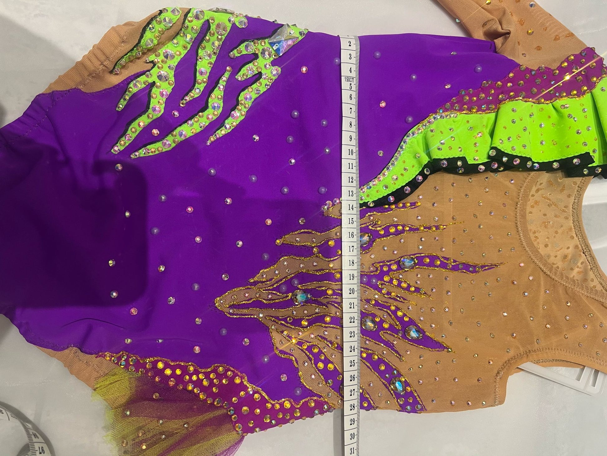 Beautiful handmade leotard adorned with high quality stones, brand new. Please see the photo with the measurements below.