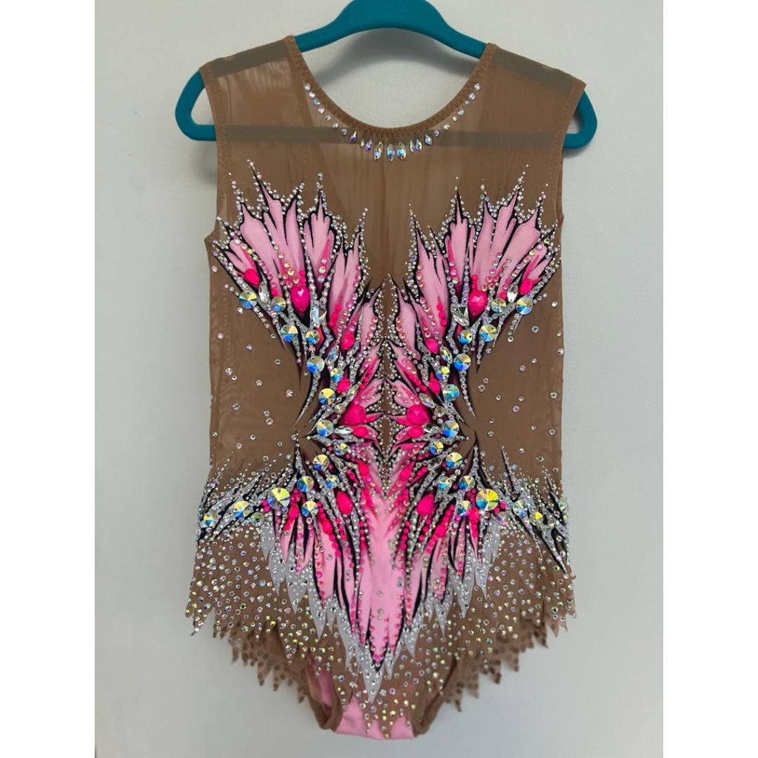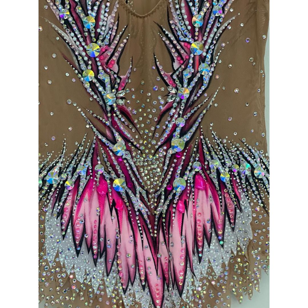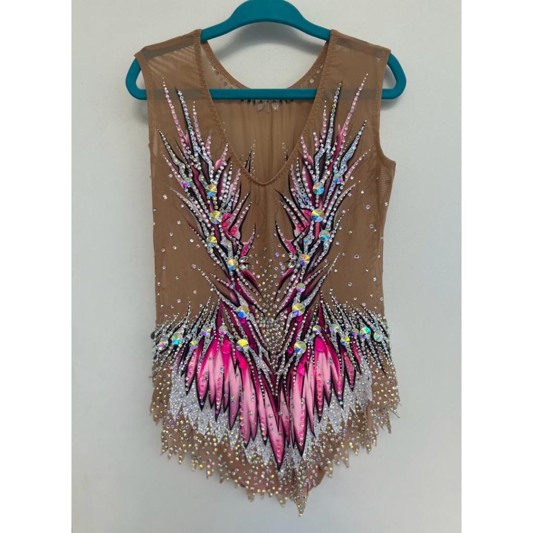 Gorgeous previously owned in excellent condition leotard for sale, mix of premium quality stones and DMC . Please see a detailed VIDEO of the leotard