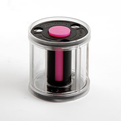 1.Open the sliding closure, press the button, put the ribbon in the opening part at either of its ends. Release the button.